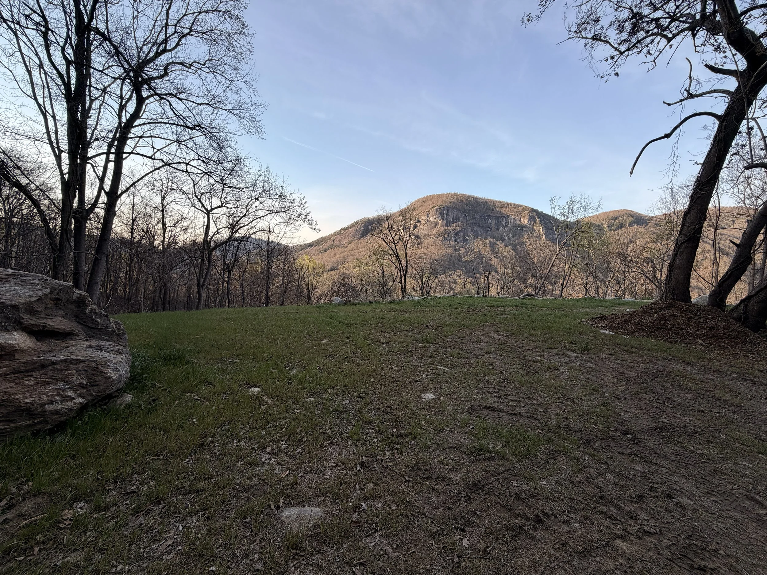 Perched near the entrance to the meadow high above downtown Chimney Rock, these pet-friendly tent only sites have obstructed (trees) views of Chimney Rock State Park, the 300ft Hickory Nut Gap Falls, the Rocky Broad River and valley below. These sites are first come first served. Its a small grass area. Find some space and pitch your tent. 1 pet allowed for each site with a maximum of 4 people per tent site. 1 car per reservation, which will be parked nearby (short walk). AWD/4WD vehicles encouraged. Expect no water or electricity at your site and a short walk to the porta-potty with sink. Bring anything you’ll need in and out. There is a communal fire-pit for all to enjoy.